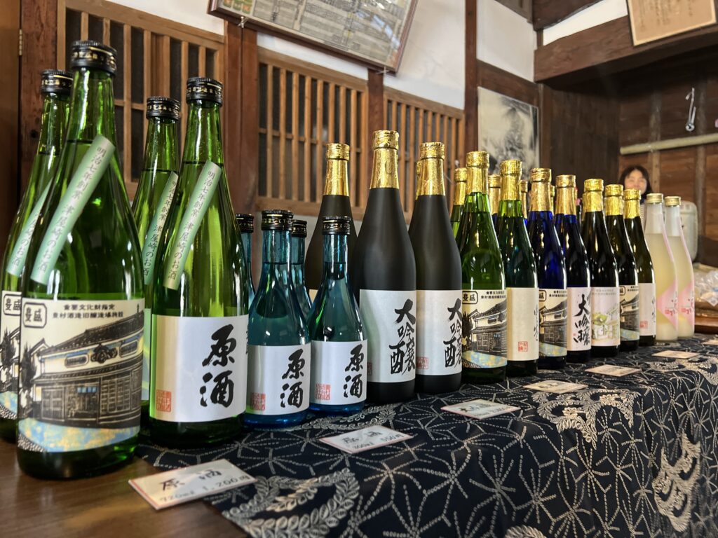 見学後には、豊村酒造の日本酒「豊盛」などの飲み比べ(3種)をお楽しみいただけます。