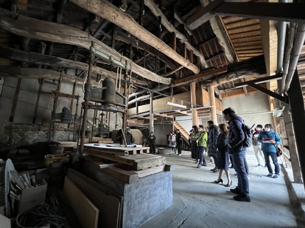国指定重要文化財「豊村酒造」では、通常は非公開となっているエリアを含め、酒造りの話や、建物が重要文化財に指定された理由などを解説します。