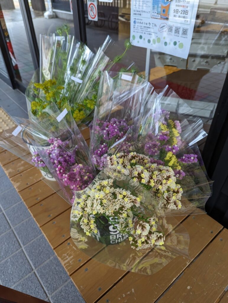 本日の入荷は、お花とにんじんです。 これから天候や気温などの状況によっては、館内に移動していることもありますので、もし正面入口に商品がない場合は、念のため館内もチェックしてみてくださいね! -